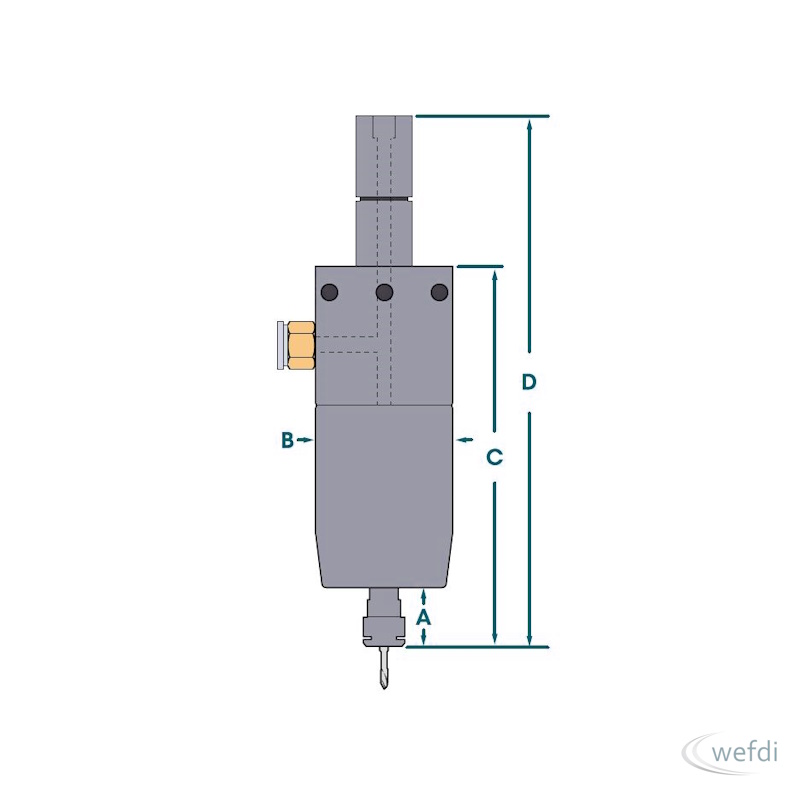 Die Spindeln arbeiten mit einer Leistung von bis zu 0,15 kW und sind für einen maximalen Spannzangendurchmesser von 3 mm (ER8 UP) ausgelegt. Dank des niedrigen Geräuschpegels von < 78 dBA tragen sie zu einer angenehmeren Arbeitsumgebung bei. Für den Betrieb wird eine saubere und trockene Druckluftverbindung mit 6,2 bar benötigt, wobei der Luftverbrauch zwischen 2,12 L/s im Leerlauf und 2,83 L/s unter Last liegt. Für einen sicheren Betrieb wird ein Luftschlauch mit einem Mindest-Innendurchmesser von 4 mm empfohlen.