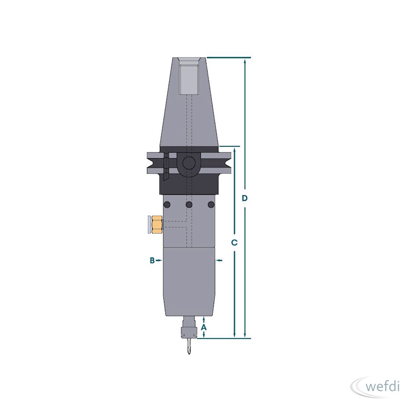 Mit einer Leistung von bis zu 0,15 kW und einem maximalen Spannzangendurchmesser von 3 mm (ER8 UP) eignen sich die Spindeln besonders für die Bearbeitung kleiner und filigraner Werkstücke. Der Geräuschpegel bleibt mit < 78 dBA angenehm niedrig. Der Betrieb erfolgt bei 6,2 bar sauberer und trockener Druckluft. Der Luftverbrauch liegt bei 2,12 L/s im Leerlauf und bis zu 2,83 L/s unter Last. Für eine stabile Druckluftversorgung wird ein Luftschlauch mit mindestens 4 mm Innendurchmesser benötigt.