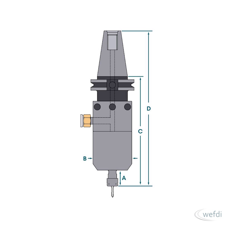 Die Druckluft-CNC-Spindeln Modell 625CAT40 sind auf Hochgeschwindigkeitsbearbeitung und kurze Zykluszeiten ausgelegt. Sie sind in Varianten mit 30.000 U/min, 40.000 U/min, 50.000 U/min oder 65.000 U/min verfügbar und ermöglichen eine effiziente Bearbeitung verschiedenster Werkstoffe.