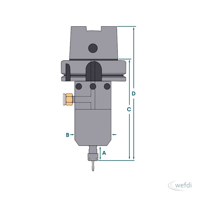 Dank der stabilen HSK-A100-Aufnahme wird eine sichere und spielfreie Verbindung zur Maschine gewährleistet. Der maximale Spannzangendurchmesser von 6 mm (ER11 UP) eröffnet vielfältige Einsatzmöglichkeiten bei feinen und hochpräzisen Bearbeitungen. Trotz kompakter Bauweise mit einem Gewicht von 2,31 kg liefern die Spindeln Leistungen von 0,30 bis 0,41 kW – ideal für hochdynamische Bearbeitungsschritte.