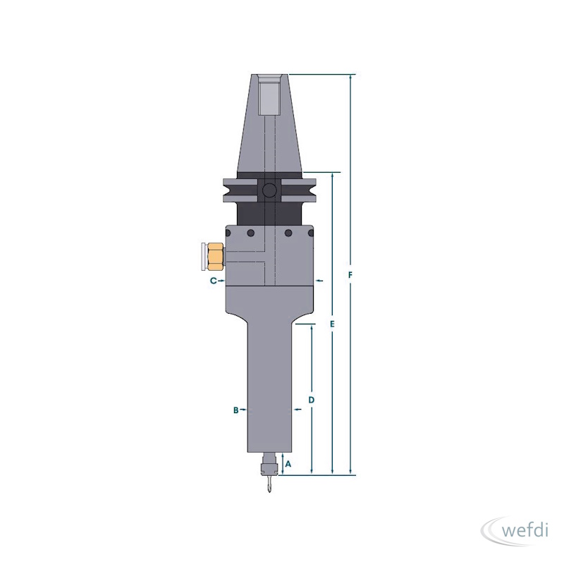 Die Druckluft-CNC-Spindel Modell 650LCAT40 überzeugt durch hohe Drehzahlen und schnelle Bearbeitungszyklen. Sie ist in 25.000 U/min, 30.000 U/min und 40.000 U/min Varianten erhältlich und ermöglicht damit eine effiziente und präzise Fertigung.
