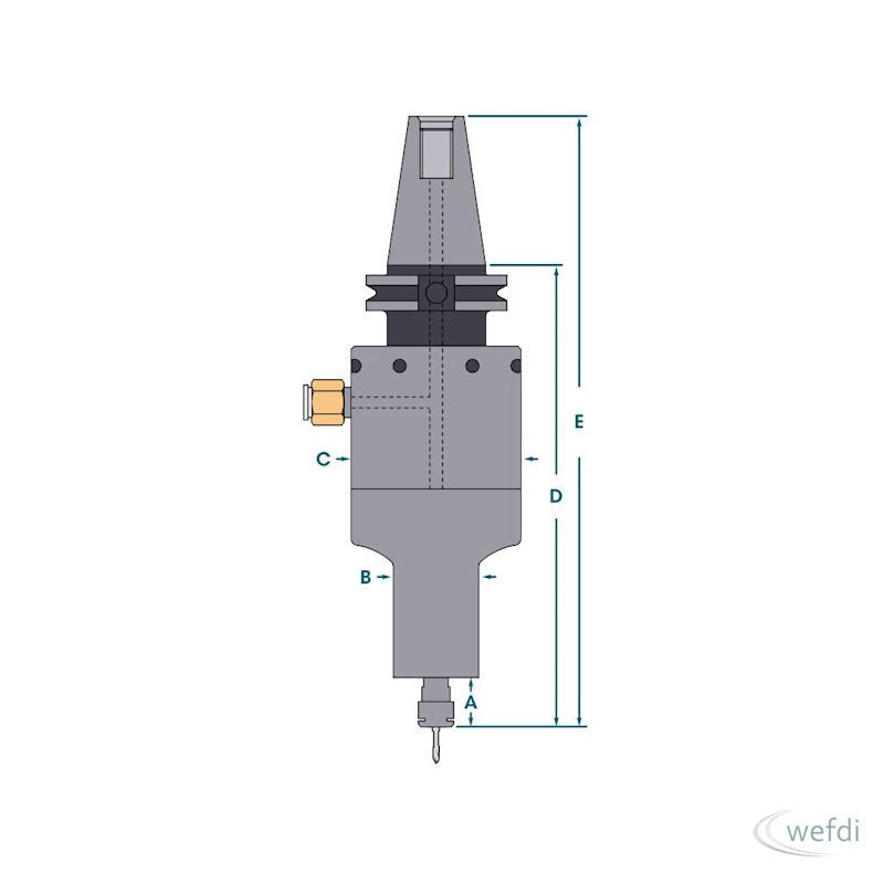 Die Druckluft-CNC-Spindel Modell 650XCAT40 zeichnet sich durch hohe Drehzahlen und verkürzte Bearbeitungszyklen aus, wodurch sie für präzise und effiziente Fertigungsprozesse bestens geeignet ist. Sie ist in den Varianten 25.000 U/min, 30.000 U/min und 40.000 U/min verfügbar.