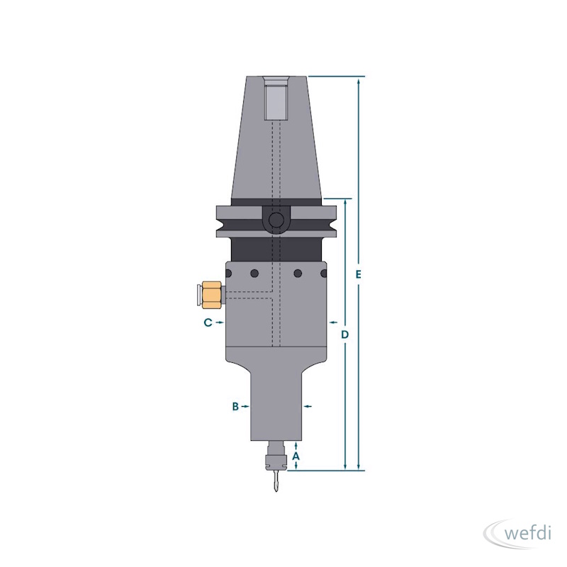 Die Druckluft-CNC-Spindel Modell 660BT50 ist für hohe Drehzahlen und schnelle Bearbeitungszyklen konzipiert. Sie erreicht 50.000 U/min und ermöglicht dadurch deutlich verkürzte Produktionszeiten.