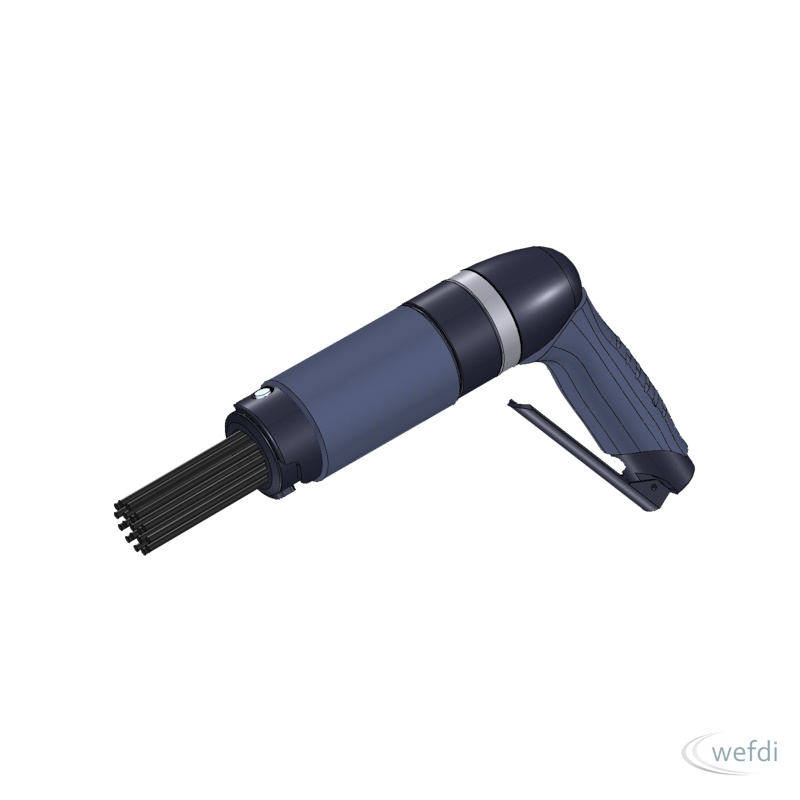 Der Druckluft-Nadelklopfer GNV‑19 ist ein leistungsfähiger und handlicher Nadelentroster für das Entfernen von Rost, Zunder, Farbe oder Schweißrückständen. Ausgelegt auf einen Betriebsdruck von 6,3bar, liefert das Gerät eine Schlagfrequenz von ca. 6.600 Hüben/min (110Hz) und liegt mit ca. 2m/s² unter den gesetzlichen Vibrationsgrenzwerten.